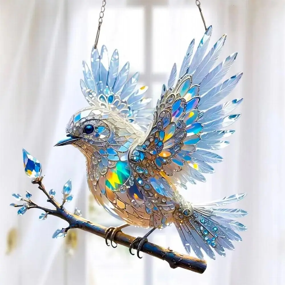 Stained acrylic Window Hanging: The stained Acrylic birds make from quality materials and is carefully assembled to ensure durability The metal chain and hook easy to hangs and display.